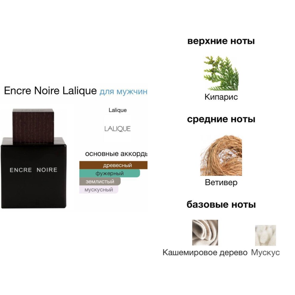 Чисто мужской классический Encre Noire — настоящий гимн аристократизму и ментальной зрелости. Представитель мужского пола, выбирающий древесный аромат от LALIQUE, уверен в себе, привлекает благородством и чувством стиля.